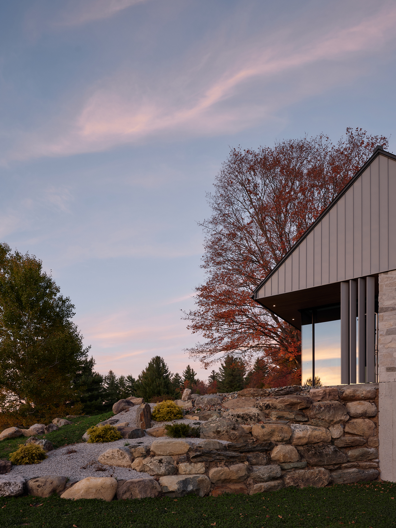 Niché au cœur des collines de Sutton, ce projet conjugue construction neuve et intégration d’une résidence existante. Une collaboration étroite entre le client et OVI a orienté les choix architecturaux et de design, assurant une cohérence entre la vision, les usages et l’exécution.