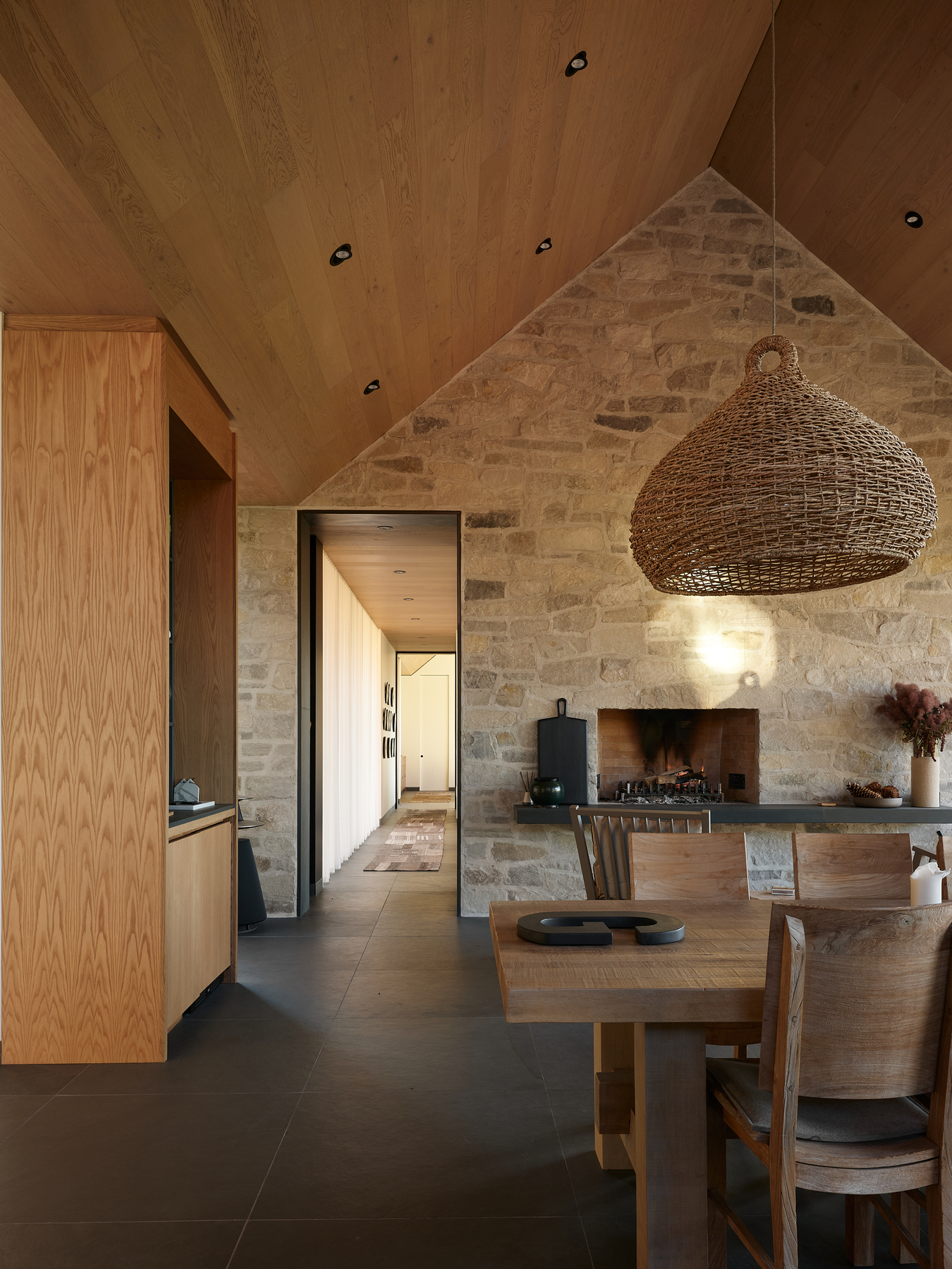 Géothermie, grandes ouvertures, plafond cathédrale et garage aux dimensions hors normes structurent les espaces, tandis que l’intégration soignée de céramiques et d’éléments de plomberie d’exception signe une réalisation à la fois architecturale et chaleureuse.
